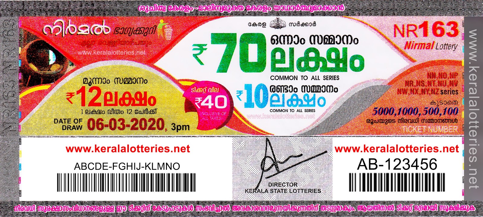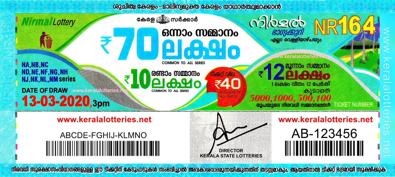 Kerala State Lotteries department releases the lottery in 12 series and the series may varies. 108 lakh tickets were issued every week for sale. The first prize winner got 70 Lakhs Rupees
