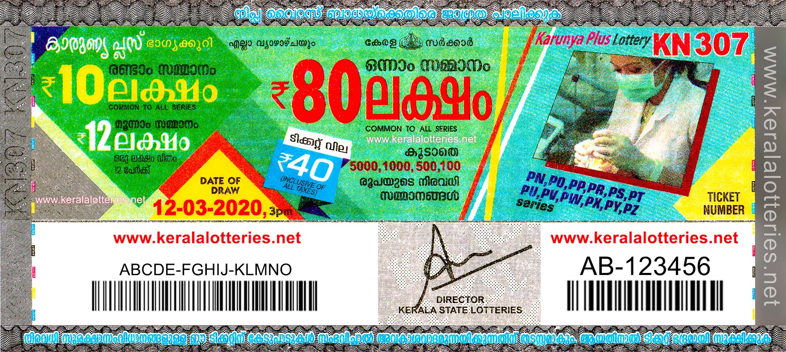 Kerala Lottery Date of Draw: 12/03/2020 Karunya Plus KN 307 Winners Numbers